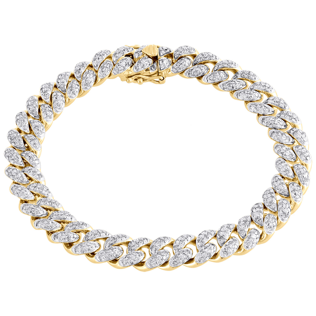 A new sophisticated and elegant look added to our Diamond Bracelet collection is this 3D Miami Cuban Puffed Link genuine diamond link. Made in real 14K Yellow Gold and natural diamonds. Sturdy frame for durability and comfort fitting. All round cut diamonds in pave setting, making the overall appearance larger and lustrous. This statement piece will make a great addition to your jewelry collection. All the diamonds on this bracelet are of equivalent color and clarity, giving this bracelet a comparable shine and luster throughout. This bracelet has a box-clasp with safety latch for secure wear. This bracelet is 8.25 mm wide. and weighs approx. 24.5 grams of gold.