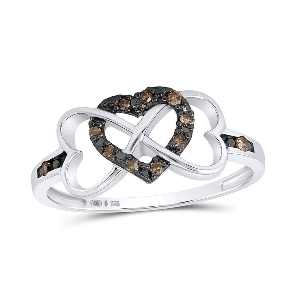 - Sterling Silver Brown Diamond Women's Infinity Triple Heart Band Ring 1/10 CT