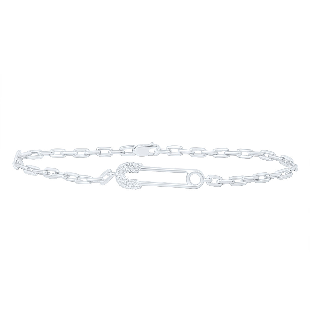 - Sterling Silver Diamond Women's 7mm Cable Safety Pin Tennis Bracelet 1/8 CT | 7"