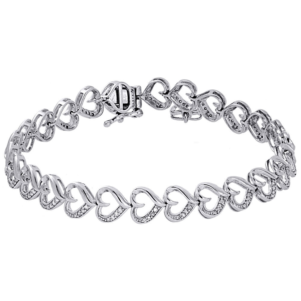 (9.4 grams of .925 Sterling Silver | 0.45 total carats of white diamonds; 7" inches long & 7.60mm wide | I1 - I2 Clarity Diamond | I - J Color | Heart Diamond Ladies Bracelet)