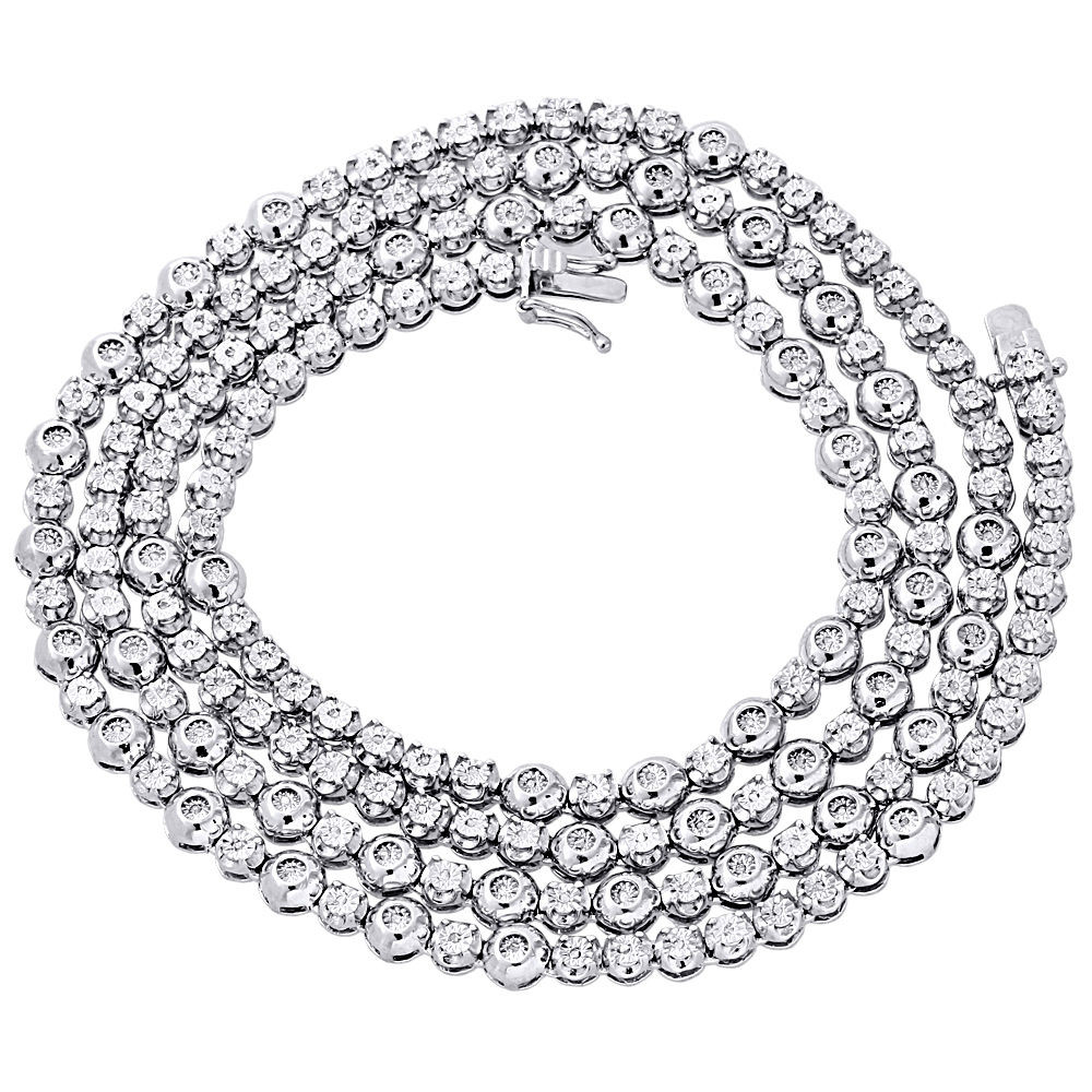 - Sterling Silver Mens Round Diamond Rosary Bezel Chain 1 Row 34" Necklace 1 Ct.