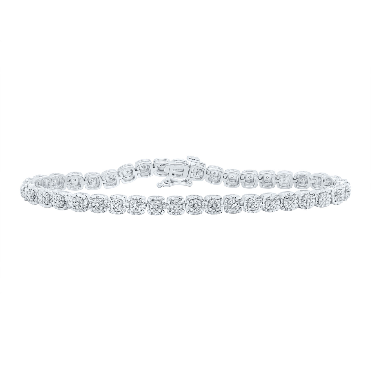 - Sterling Silver Real Diamond D/C 5mm Rounded Square Link Bracelet 1/10 CT | 7"