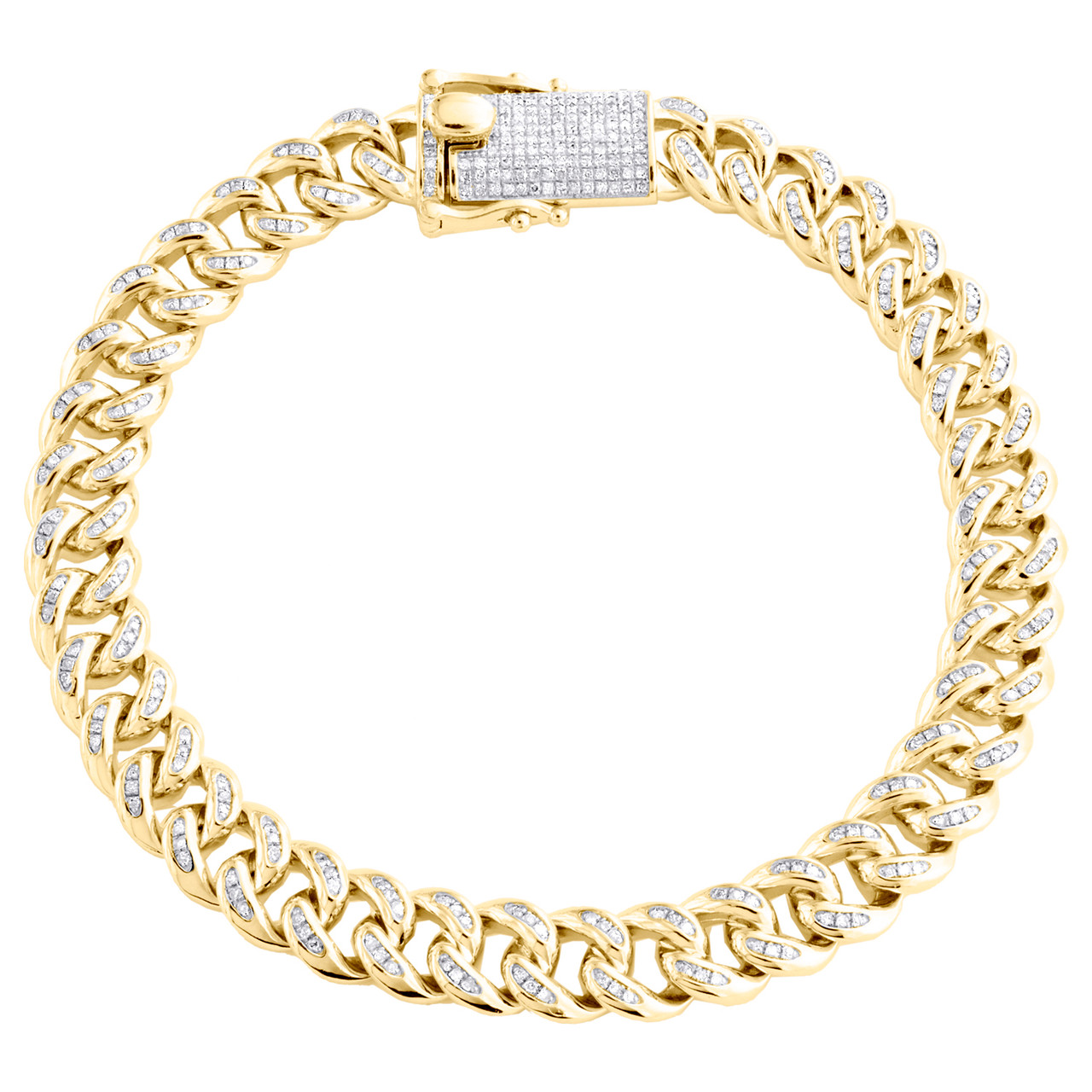 - Sterling Silver Yellow Finish Diamond Miami Cuban Link 8.75mm Bracelet 8" Box Clasp 1.75 CT.