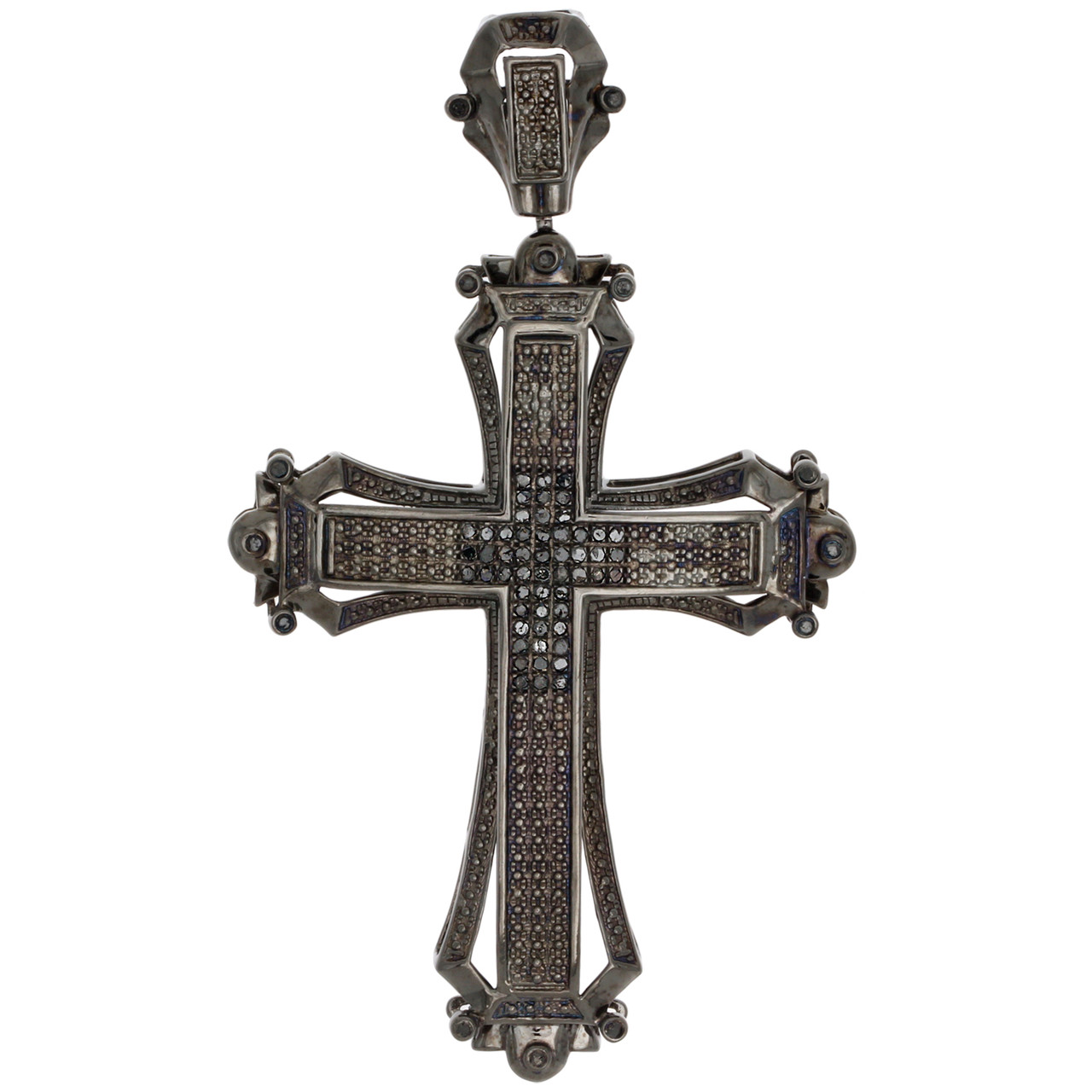 - Black PVD Sterling Silver Real Black Diamond Cross Pendant 3" Pave Charm 0.55 CT