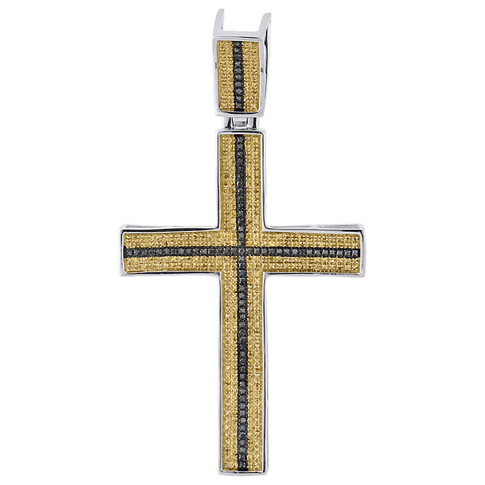 (8.9 grams of .925 Sterling Silver | 1.00 total carats of yellow & black diamonds | 2.20" long & 1.50" wide | I1 - I2 Clarity & H - I Color | Diamond Cross Pendant / Charm)