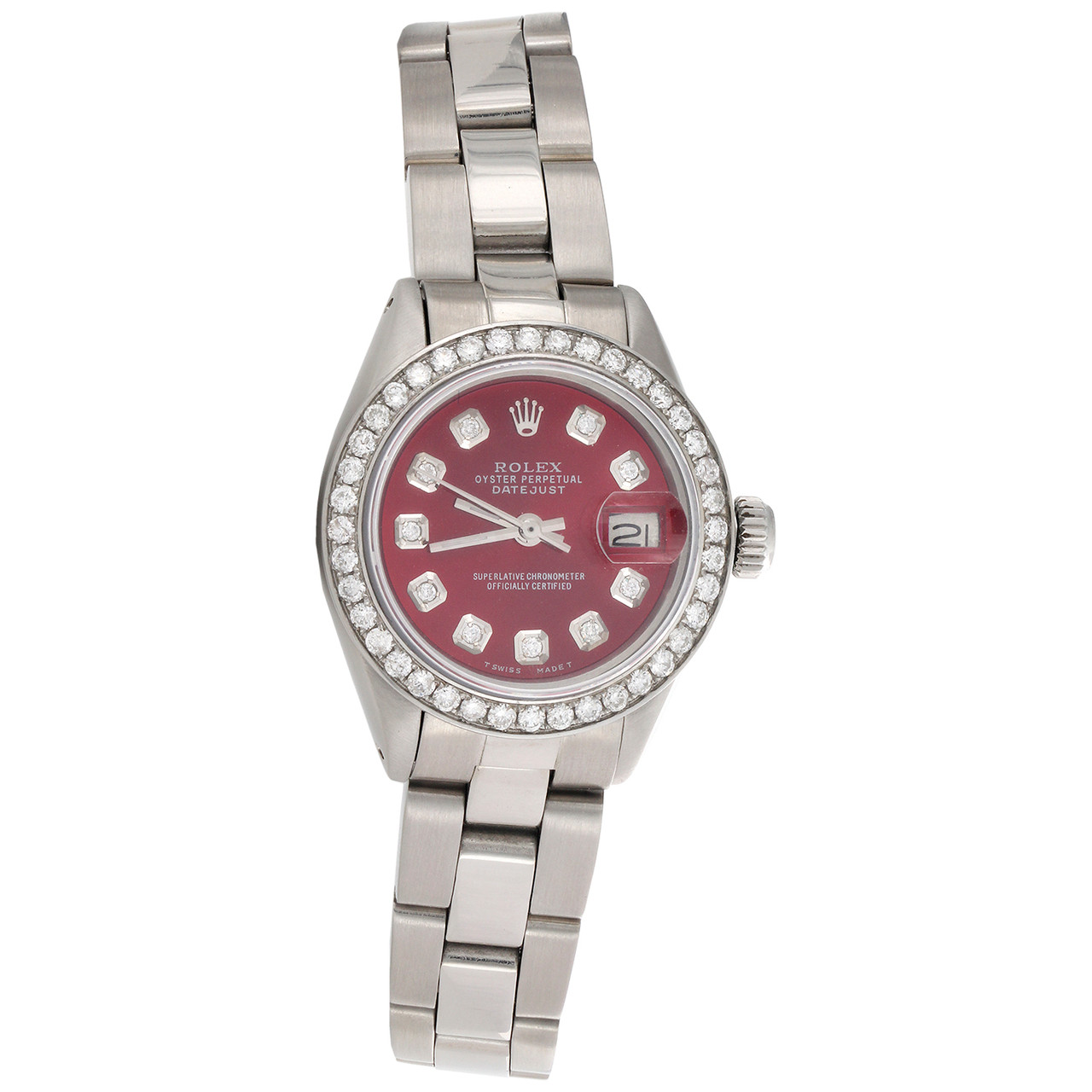- Womens 6917 Rolex DateJust 26mm Diamond Watch Red Dial Steel Oyster Band 1 CT.