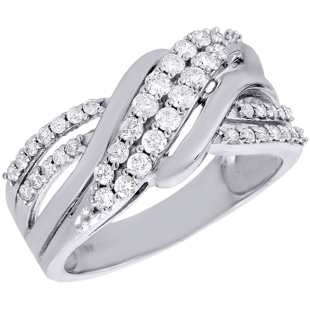 10K White Gold Round Cut Diamond 2 Row Crossover Band Right Hand Ring 0.50 Ct.