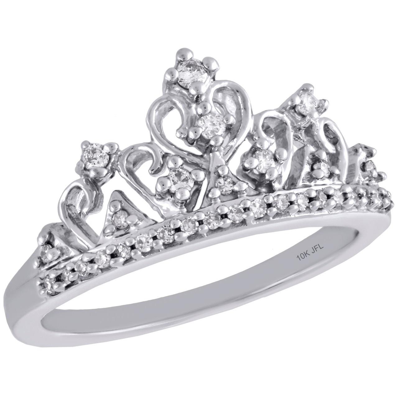 (3 grams of 10K White Gold| 0.20 carat total weight of white diamonds | Band Width (shank): 9.75mm | I1 - I2 Clarity | H - I color | Women's Diamond Queen's Crown Fashion Ring)