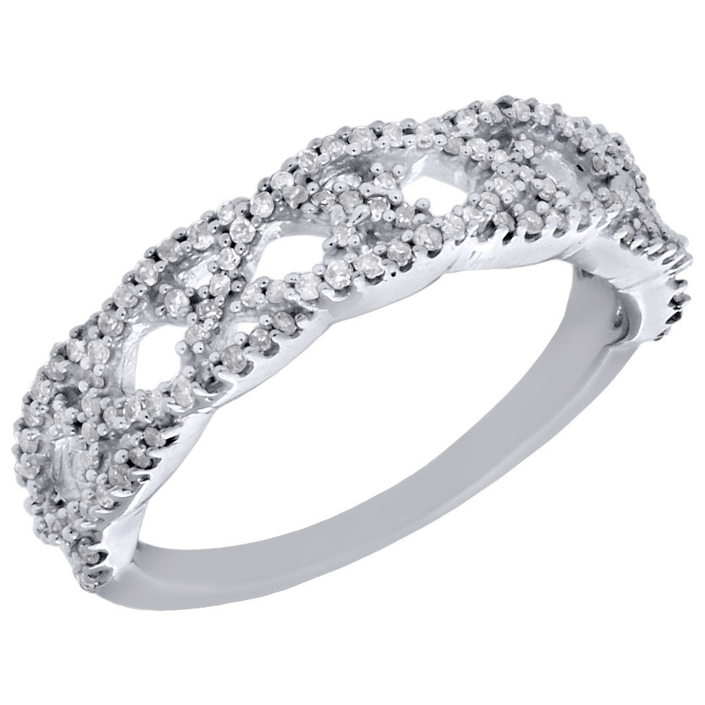 - 10K White Gold Diamond Criss Cross Anniversary Band Statement Ring 0.38 Ct.