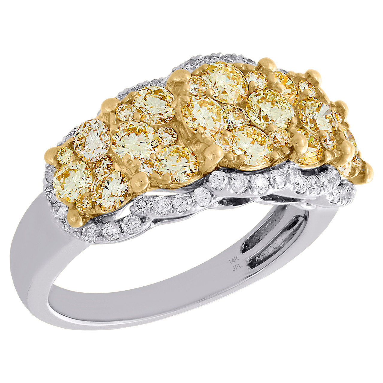 14K White Gold Natural Yellow Diamond Cluster Anniversary Ring Wedding Band 2 Ct