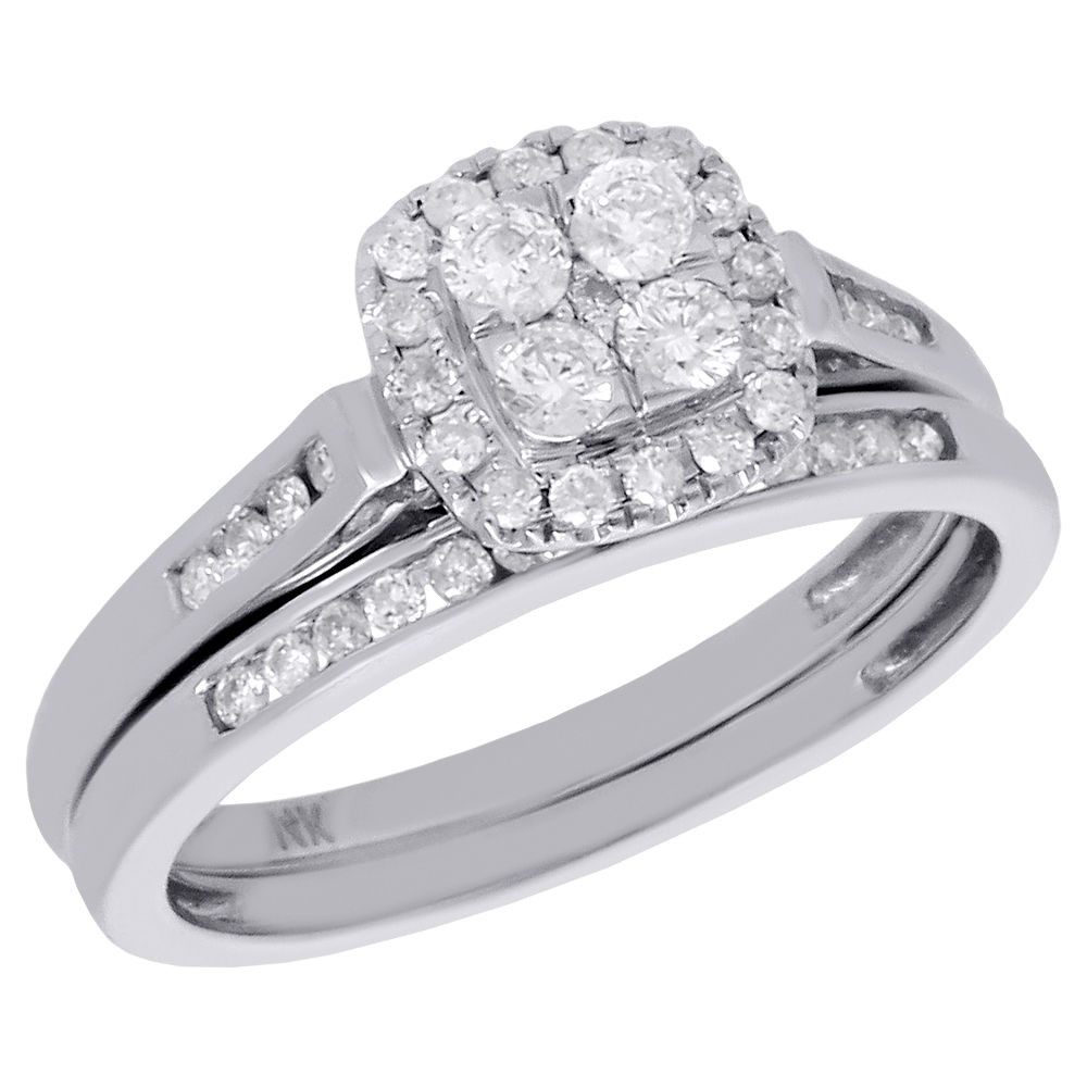14K White Gold Round Diamond Square Halo Engagement Ring Bridal Set 0.50 Ct.