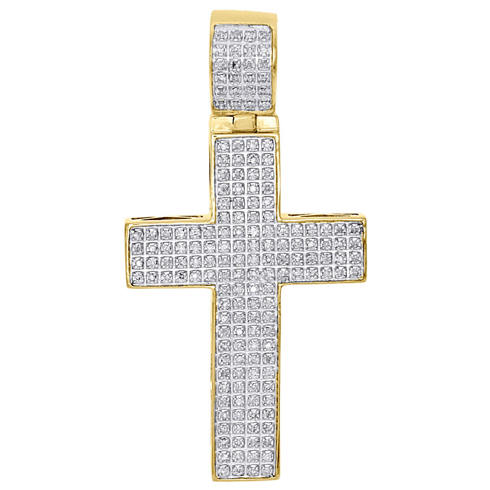 - 10K Yellow Gold Genuine Diamond Mini Cross Pendant 1.95" Mens Flat Charm 0.50 Ct