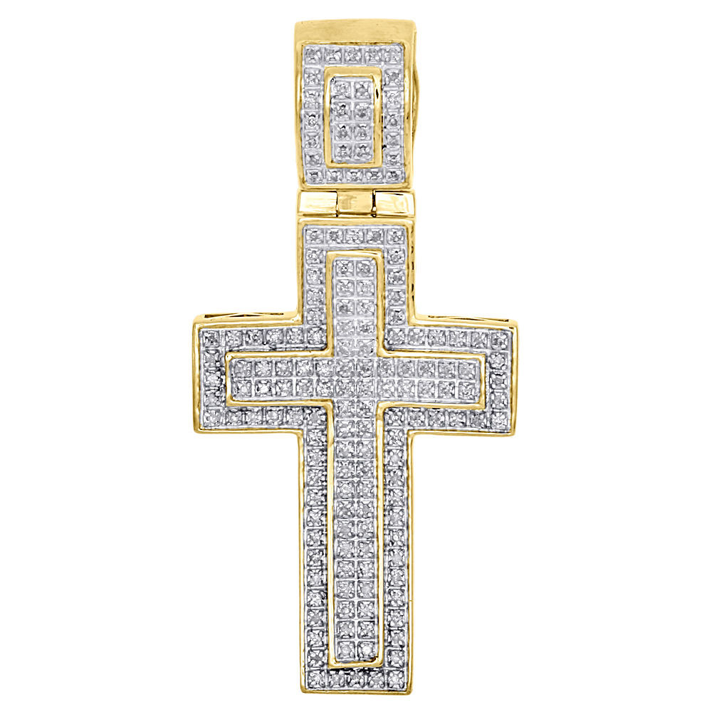 (7.5 grams of 10K Yellow Gold | 0.50 total carats of white diamonds | 1.95" long & 0.90" wide | SI2 - I1 Clarity & H - I Color | Mens Diamond Domed Medium Cross Pendant Pave Setting Charm)