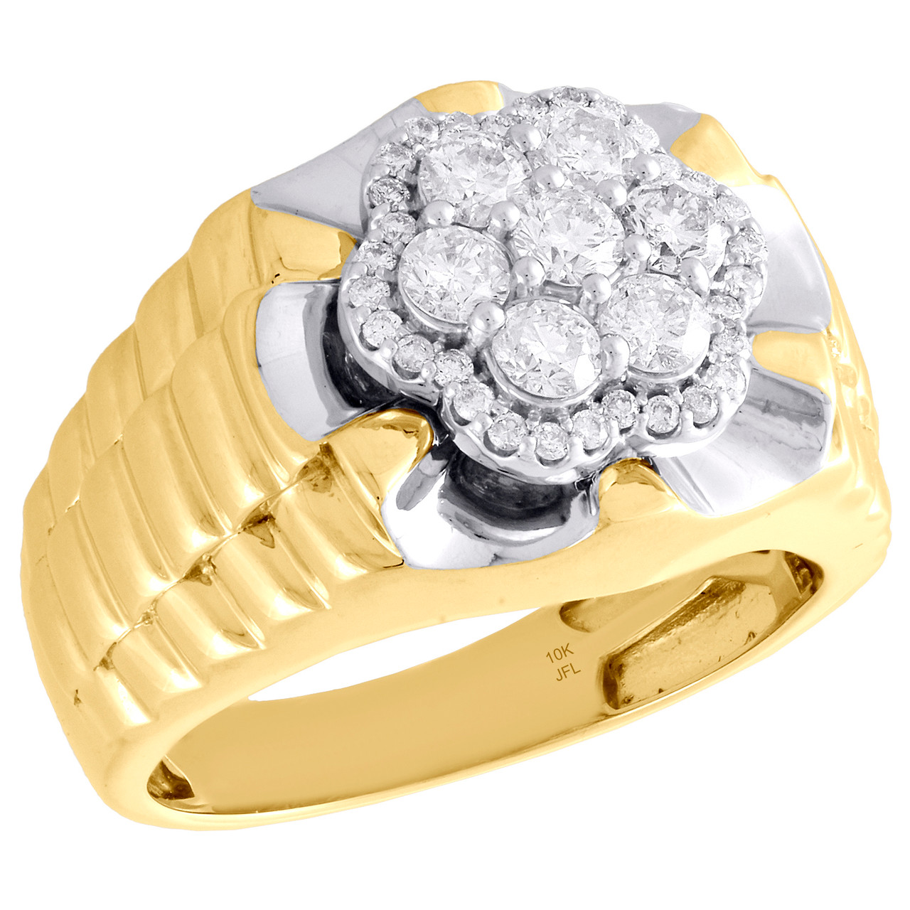 - 10K Yellow Gold Real Diamond Cluster Band Halo Frame 15mm Men's Pinky Ring 1 CT.