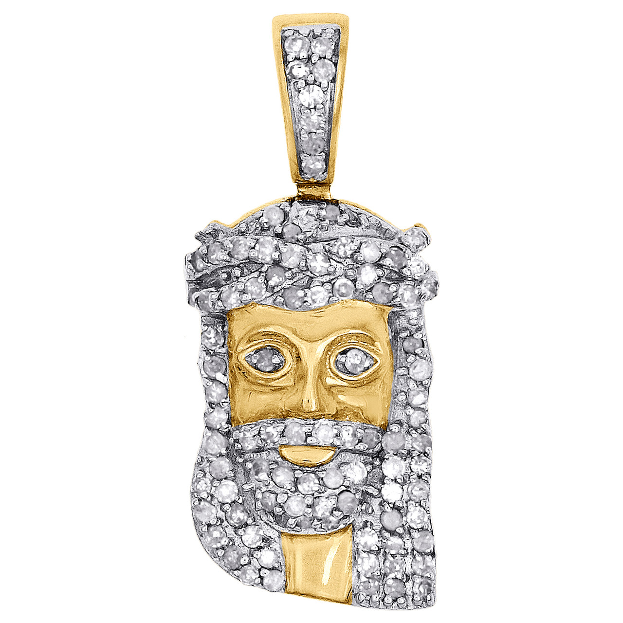 (2.6 gr. of 10K Yellow Gold | Total Carat Weight: 0.33 ct. t.w. of White Diamonds | Length: 0.95" (including bail) | Width: 0.40" | Clarity: I1 - I2 | Color: H - I | Men's Genuine Diamond Small / Mini Jesus Face Pendant Statement Pave Charm)