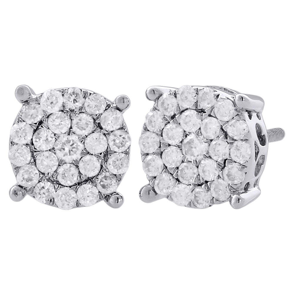 (2.5 grams of 10K White Gold | 0.75 total carats of white diamonds | 8.75mm wide | SI2 - I1 Clarity | H - I Color | Ladies Round Diamond Stud Earrings)