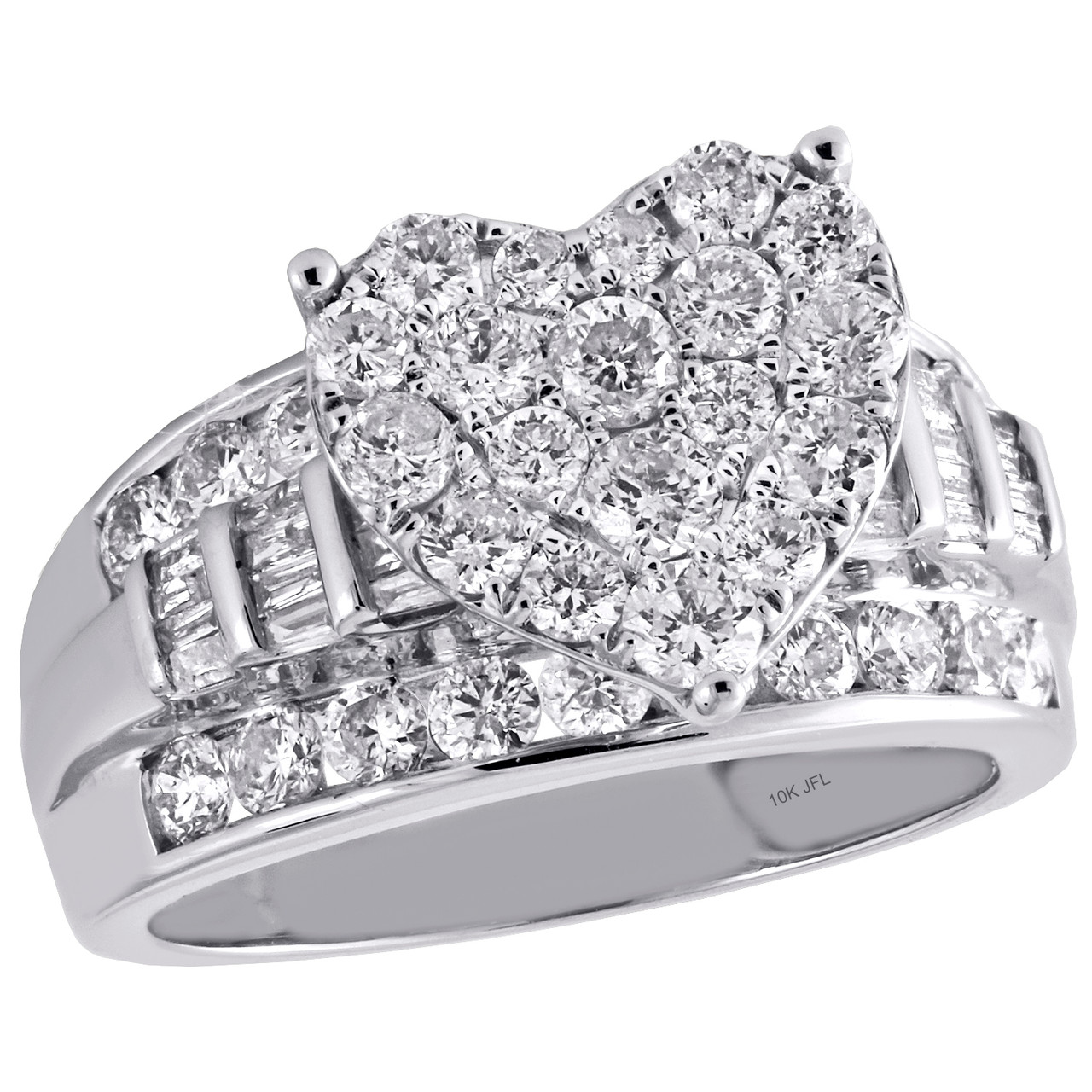 - 10K White Gold Round Diamond Heart Cluster Ladies Designer Engagement Ring 2 Ct.