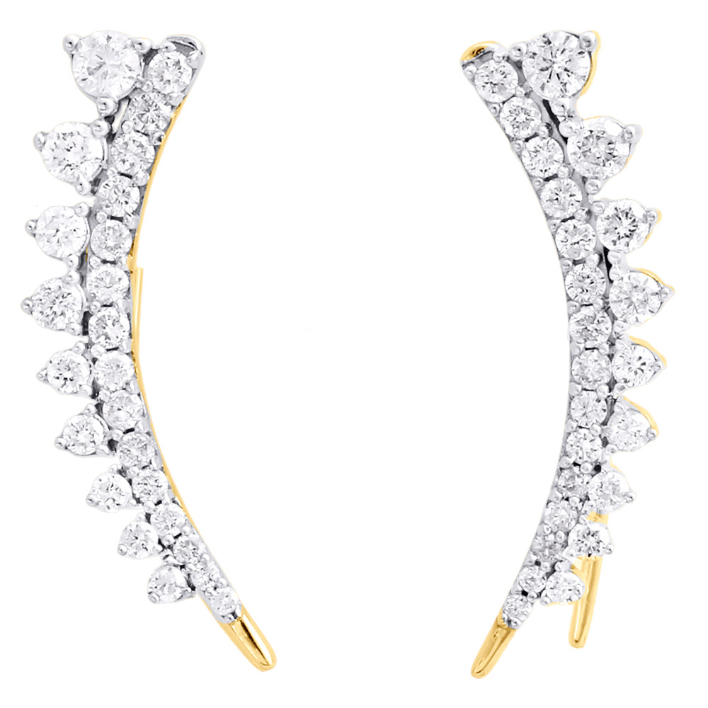 - 10K Yellow Gold Diamond Ear Climbers Graduated Stone Earrings 1" Long 1 CT.
