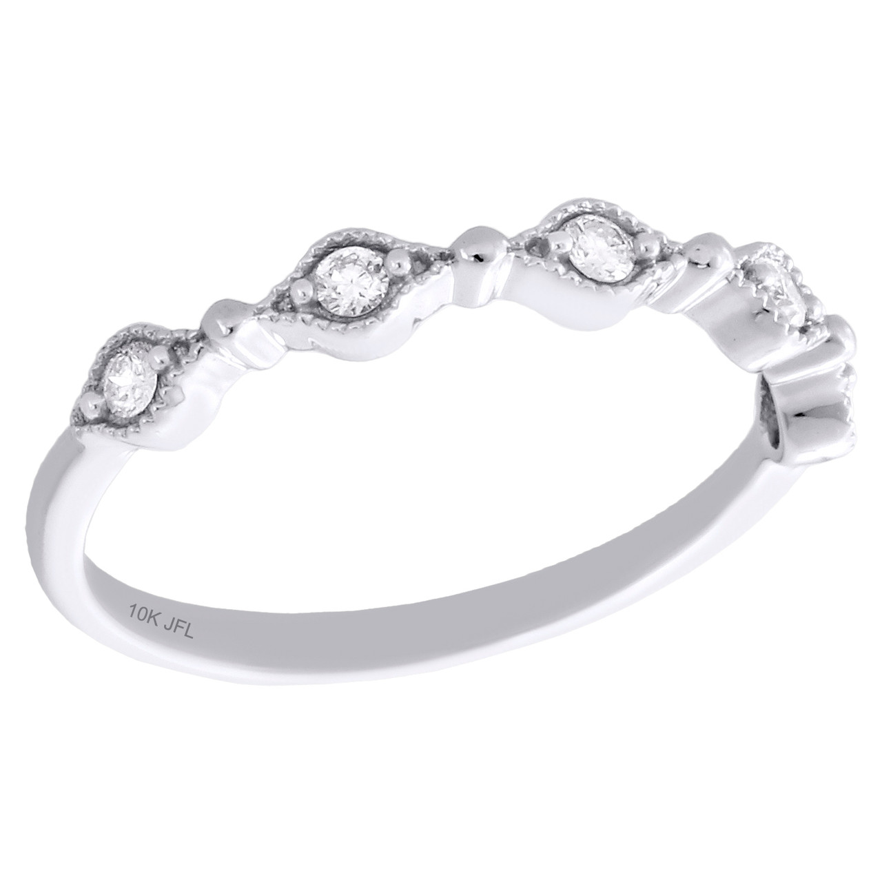 - 10K White Gold Diamond Anniversary Ring Stackable Milgrain Wedding Band 1/8 CT.