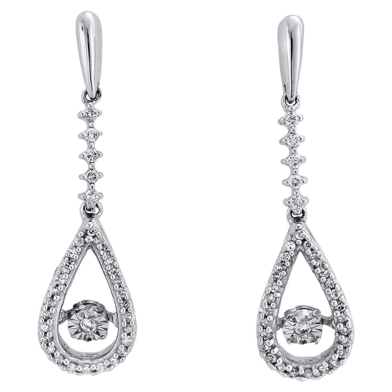 - 10K White Gold Dancing Diamond Danglers Fancy Tear Drop 1.05" Earrings 1/5 CT.
