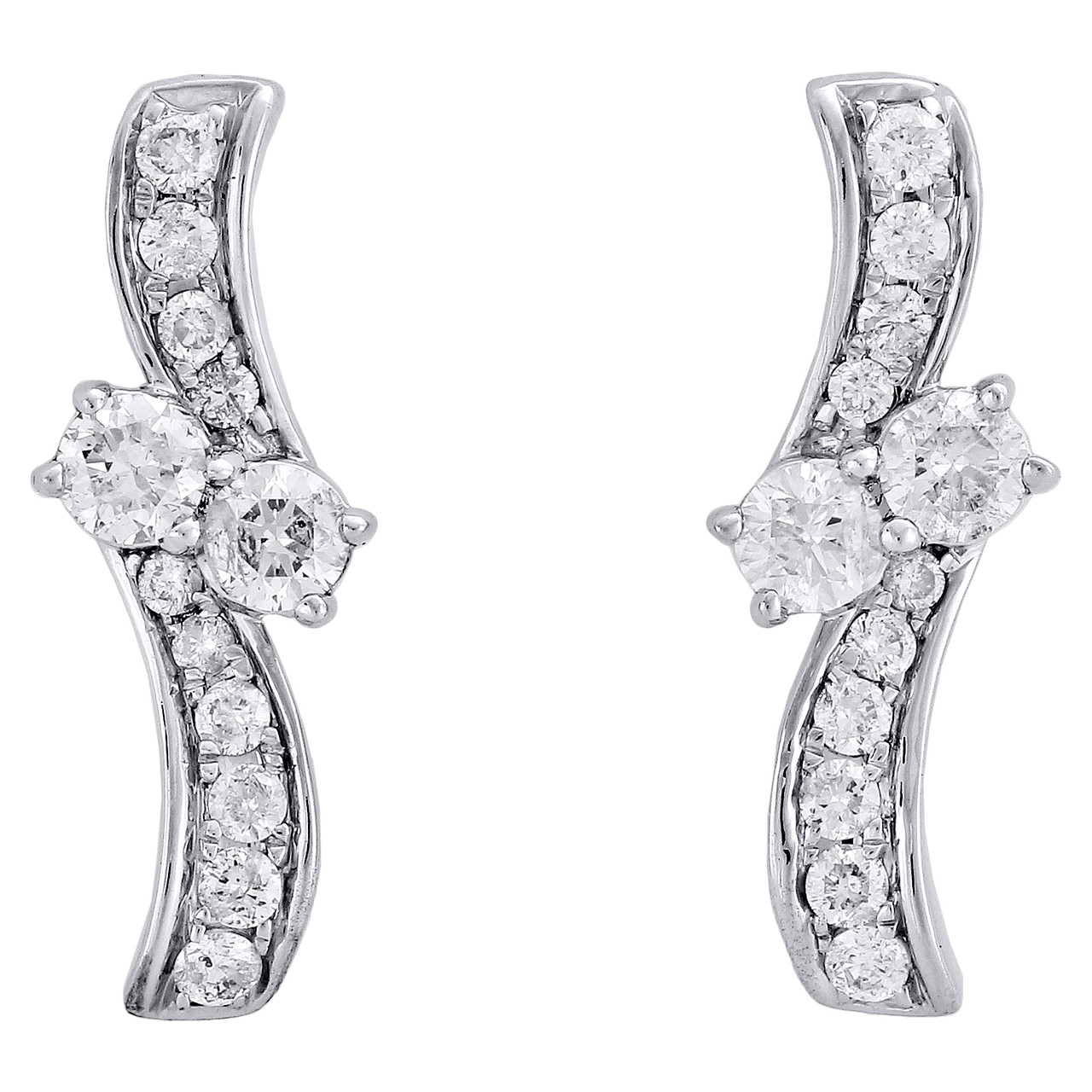 (3.6 grams of 14K White Gold | Total Carat Weight: 1 ct. t.w. of white diamonds | Length: 0.80" | Width: 0.30" | Clarity: SI2 - I1 | Color: H - I | Thickness: 3.50mm | Women's Genuine White Diamond Two Stone Love and Friendship Swirl Fancy Drop Earrings)