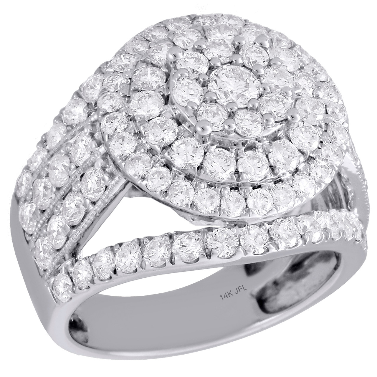 14K White Gold Round Solitaire Diamond Cluster Flower Engagement Ring 3 Ct.