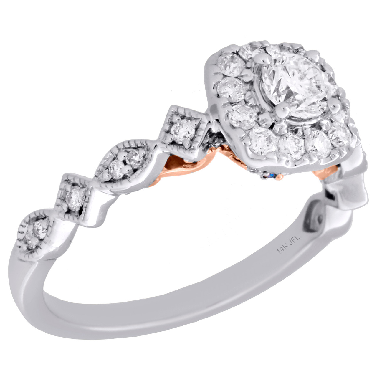 (3.7 gr. of 14K White & Rose Gold | 0.75 ct. t.w. (1/3 ct. CRD) of white diamonds | Center Width: 6.70mm | Band Width (shank): 3.15mm | Head Rise: 7.90mm | Diamond Clarity Grade: SI2 - I1 | Diamond Color Grade: G - H | Women's diamond wedding engagement ring)
