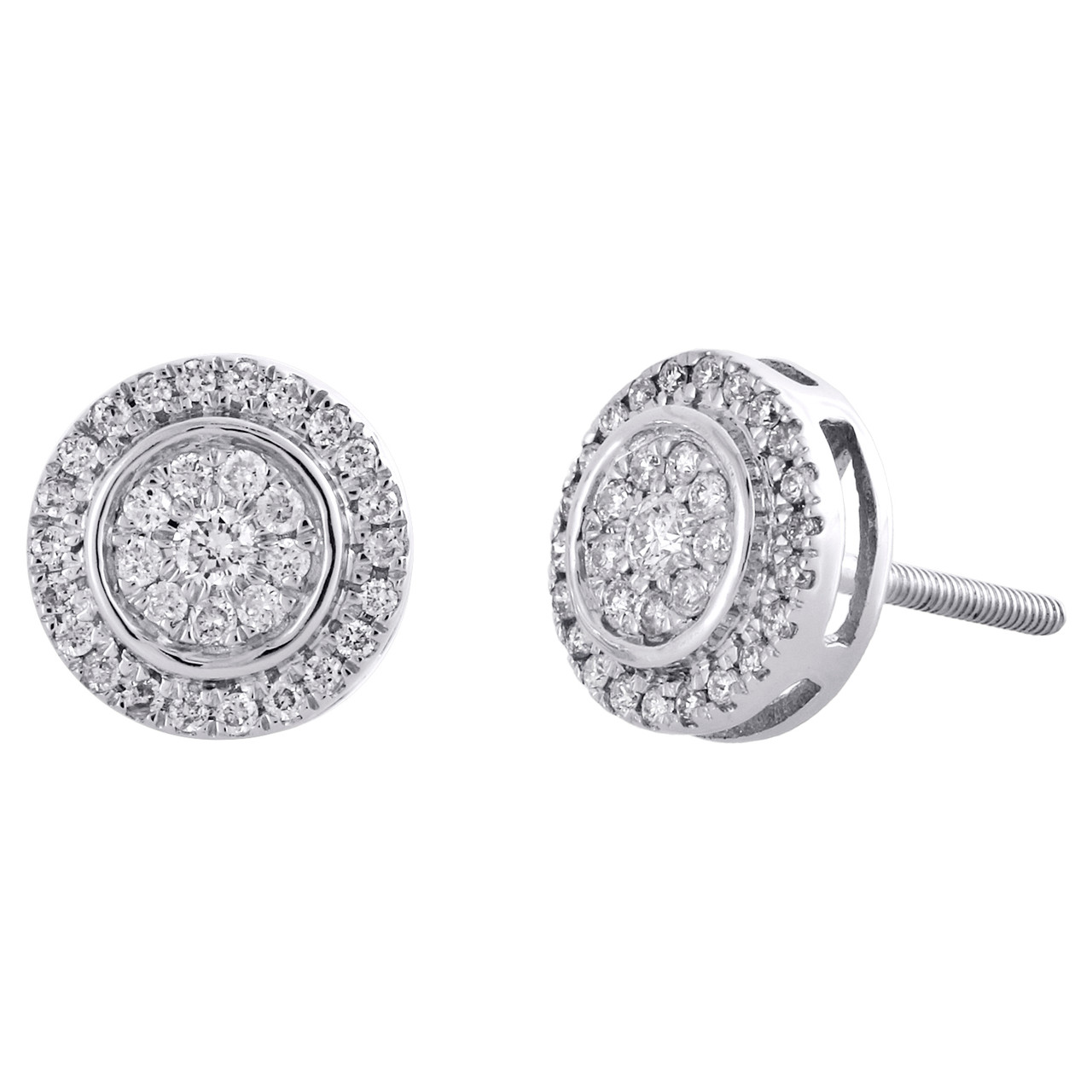Stunning pair of studs added to our diamond earring collection. These earrings are expertly crafted in 14K white gold. Radiant with 0.25 ct. t.w. of genuine diamonds, these studs are high polished for a bright shine. These particular studs consist of round diamonds in shared prong setting, making the overall appearance larger and lustrous. Screw-backs for secure wear, these earrings will be a great addition to your jewelry collection. Circle shape frame give these pair of earrings depth and makes a bold fashion statement. Perfect size, these studs are 8.25mm in width and 3.25mm thickness.