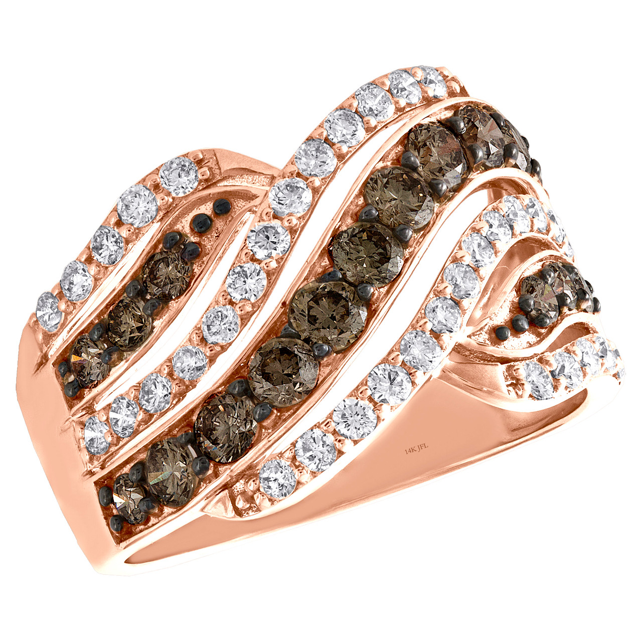 14K Rose Gold Brown Diamond Swirl Anniversary Band Statement Ring 1.50 CT.