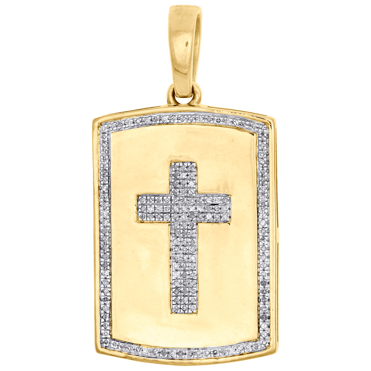 (5.5 gr. of 10K Yellow Gold | Total Carat Weight: 0.33 ct. t.w. of White Diamonds | Length: 1.55" (including bail) | Width: 0.80" | Clarity: I1 - I2 | Color: H - I | Men's Genuine Diamond Dog Tag with Cross Pave Pendant Charm)