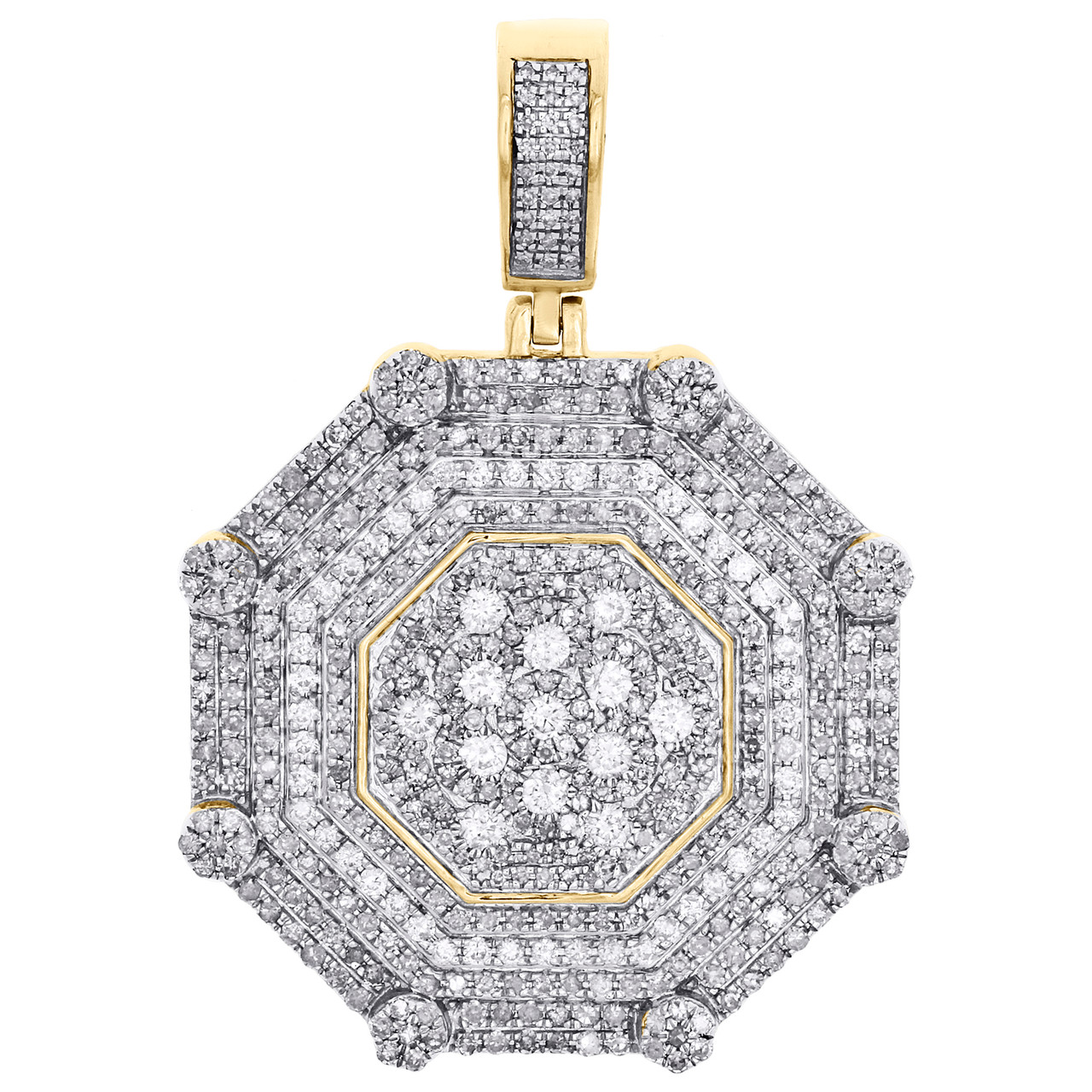 (13.6 gr. of 10K Yellow Gold | Total Carat Weight: 3.87 ct. t.w. of White Diamonds | Length: 2.10" (including bail) | Width: 1.40" | Thickness: 6.25mm | Clarity: SI2 - I1 | Color: G - H | Men's Genuine Round Diamond Octagon Frame Medallion Pendant Statement Pave Charm)
