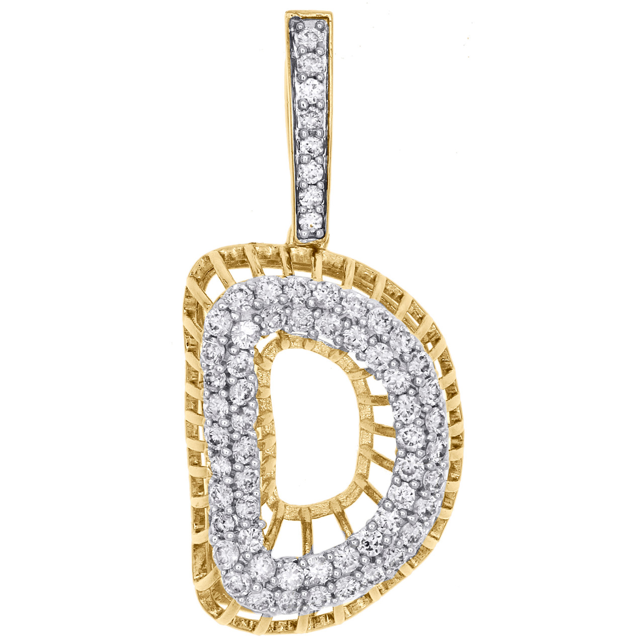 - 10K Yellow Gold Diamond D Initial Letter Pendant 2 Row Pave Dome Charm 1 CT.