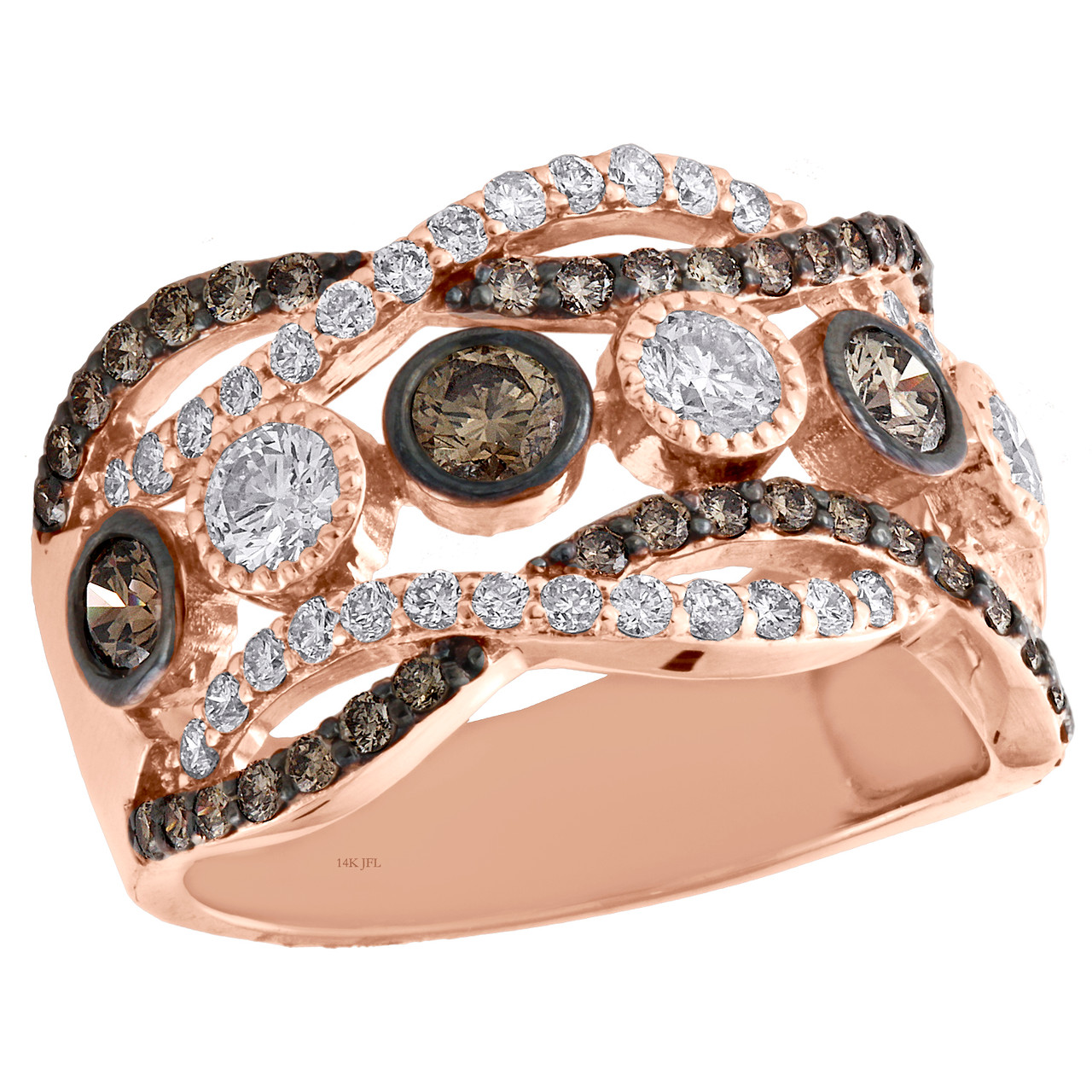 14K Rose Gold Brown & White Diamond Bezel Set Braided Right Hand Ring 1.75 Ct.