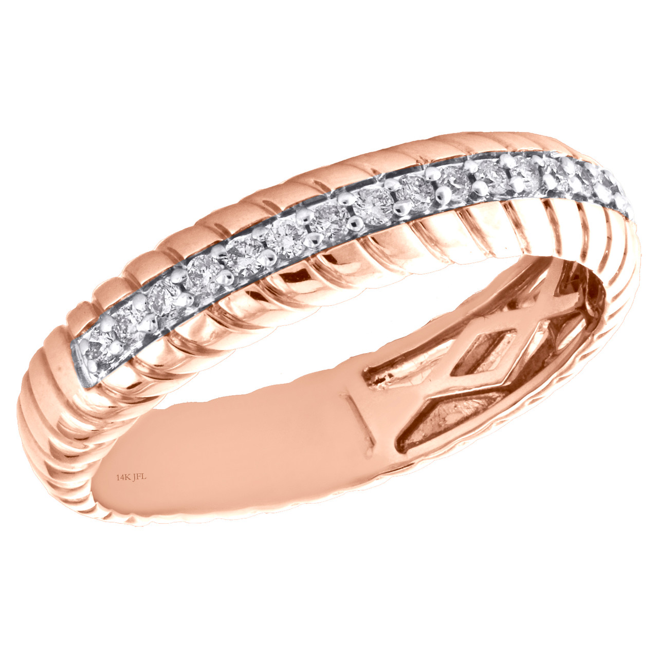 - 14K Rose Gold Round Cut Diamond Swirl Eternity Wedding Band 4.50mm Ring 1/5 CT.