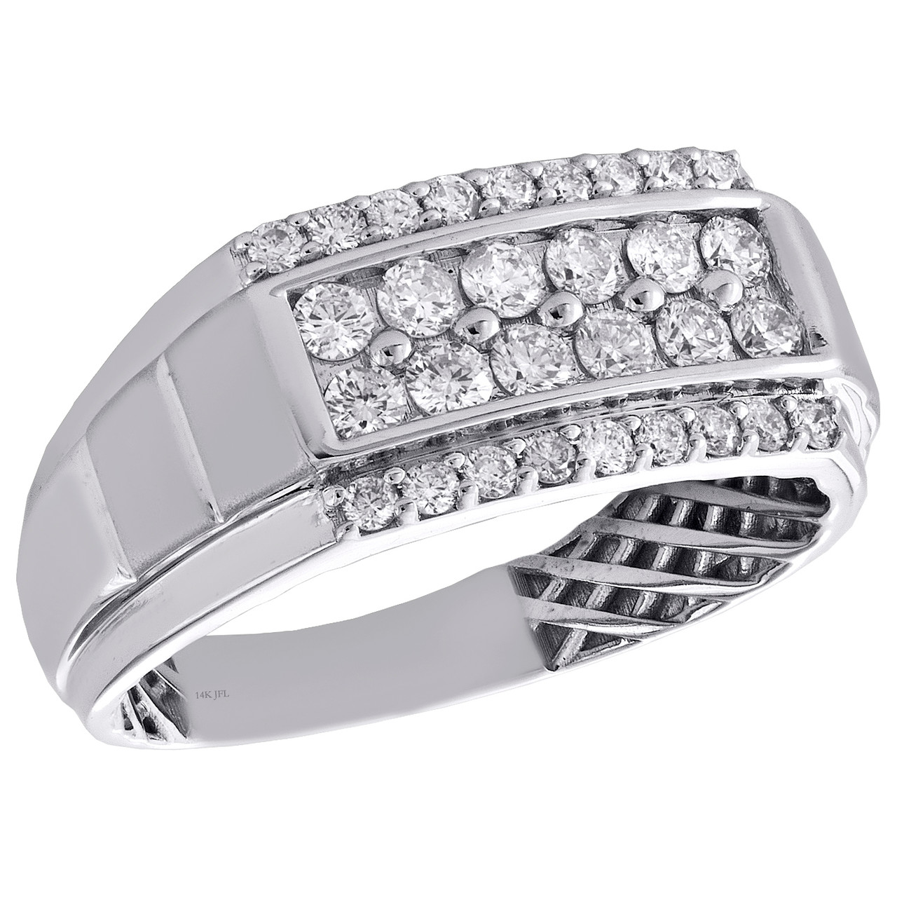 (10.4 gr. of 14K White Gold | Total Carat Weight: 1 ct. t.w. of White Diamonds | Width: 10mm | Clarity: I1 - I2 | Color: G - H | Men's Genuine Round Diamond Pave Setting Wedding Band Statement Ring)