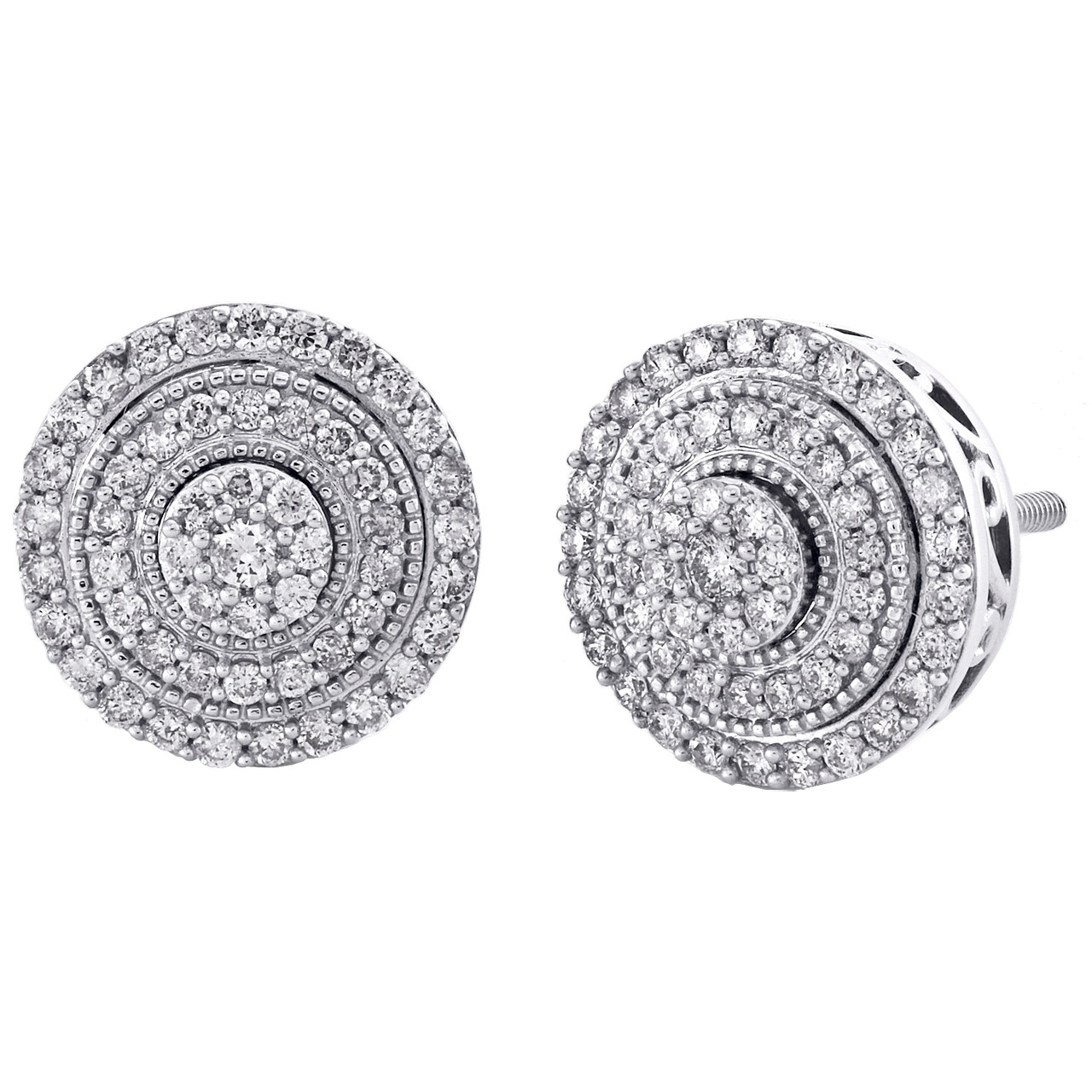 - 14K White Gold Round Diamond Tier Milgrain Halo Frame Stud 10mm Earrings 1/2 CT.