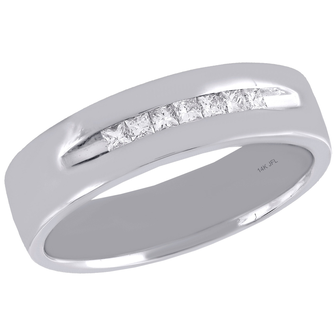 14K White Gold Princess Cut Diamond Wedding Band Mens 6mm Engagement Ring 1/4 Ct