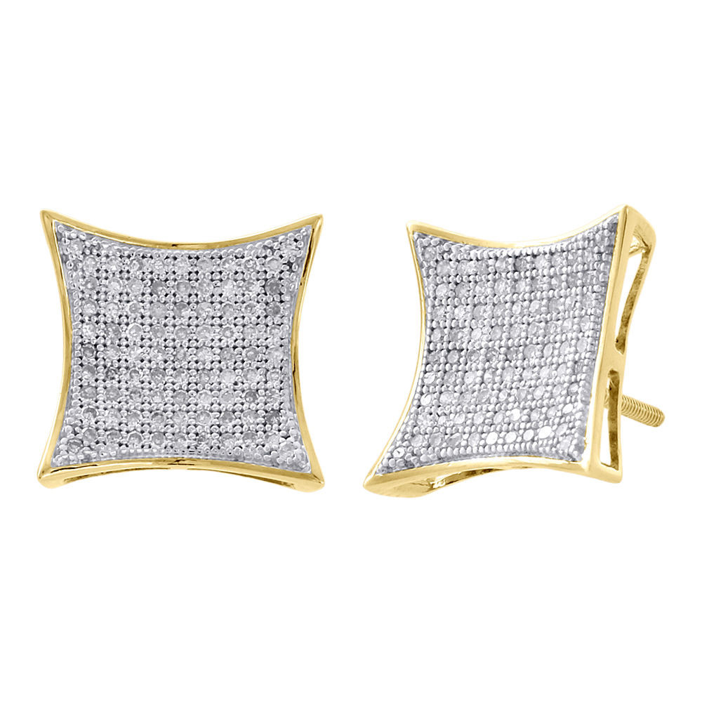 - 10K Yellow Gold Genuine Diamond Kite Studs Pave Set 13.15mm Earrings 0.50 Ct.