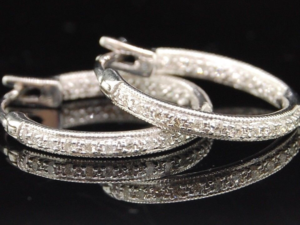 - LADIES 14K WHITE GOLD DIAMOND HOOPS HUGGIES EARRINGS
