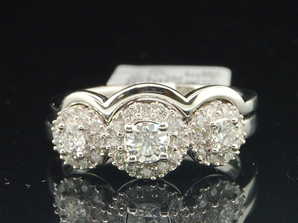 Up for auction is a very affordable priced diamond bridal set. This ring is set in real 14K White Gold and real round cut diamonds in prong setting. Diamonds are set close together for a uniform and clean look. The diamonds are machine set precisely to give it a clean finish.