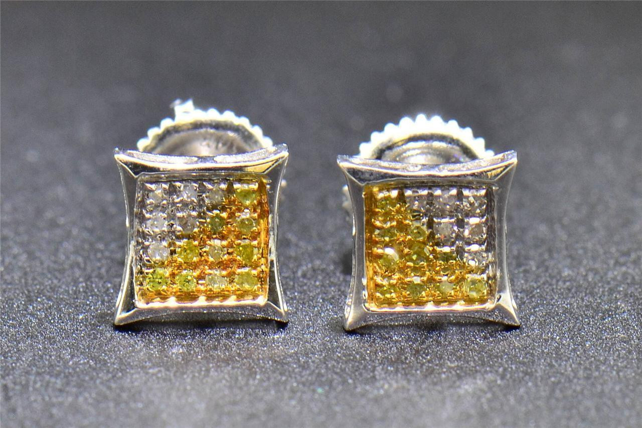 - Yellow Diamond Studs 14K White Gold 0.10 CT Pave Kite Shaped Mini Earrings