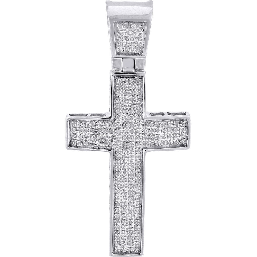 (5.1 grams of 10K white gold, 0.50 total carats of white diamonds; 1.87" long & 0.89" wide; SI2 - I1 Clarity & H - I color; Mini Jesus Cross Pendant Charm to Wear with Necklace)