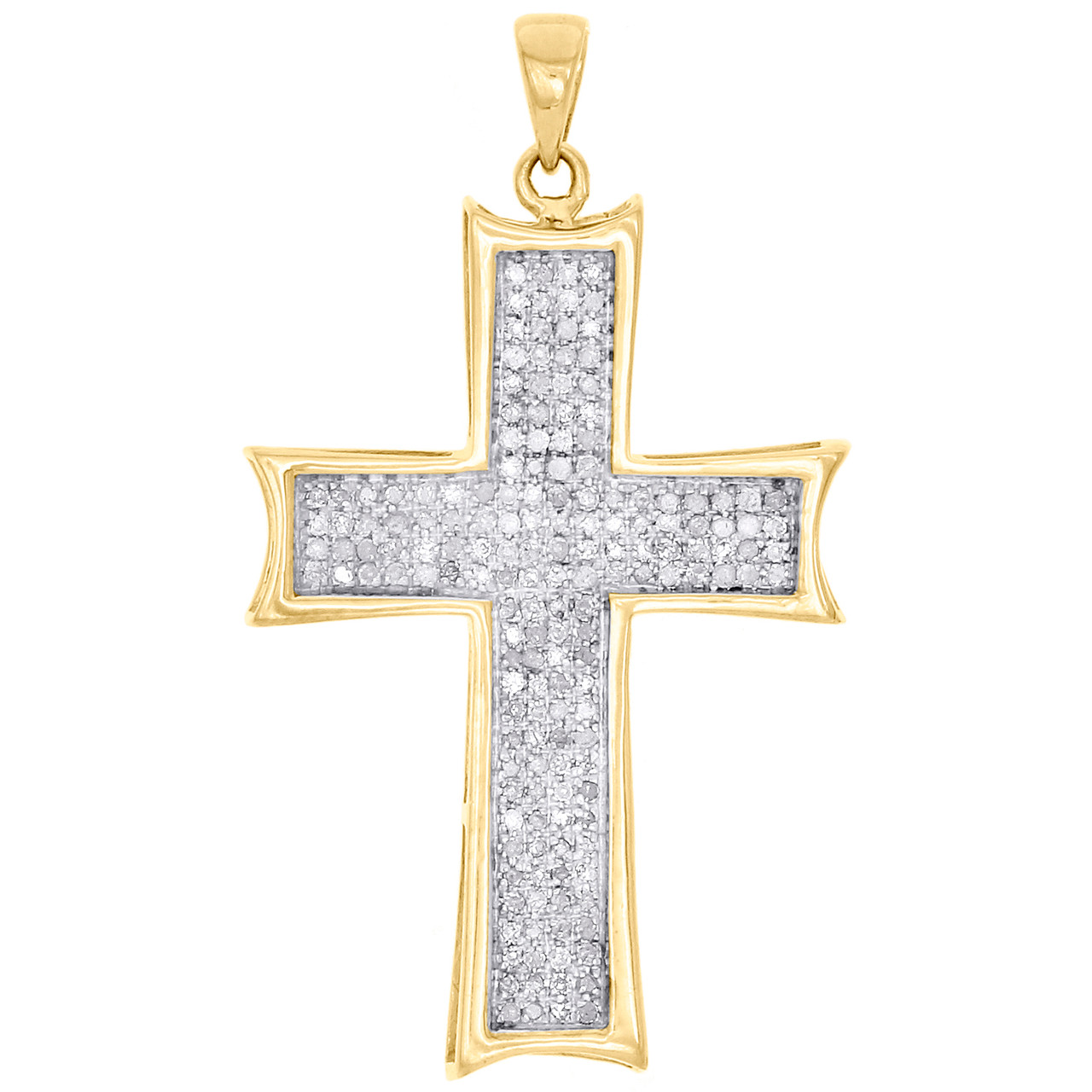 (4.2 gr. of 10K Yellow Gold | Total Carat Weight: 0.50 ct. t.w. of white diamonds | Length: 1.60" | Width: 0.90" | Clarity: I1 - I2 | Color: I - J | Unisex Real Diamond Cross Pendant Pave Charm)