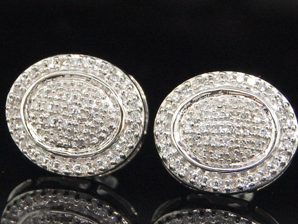 - Diamond Circle Earrings Ladies 10K White Gold Round Pave Studs 1/3 Tcw.
