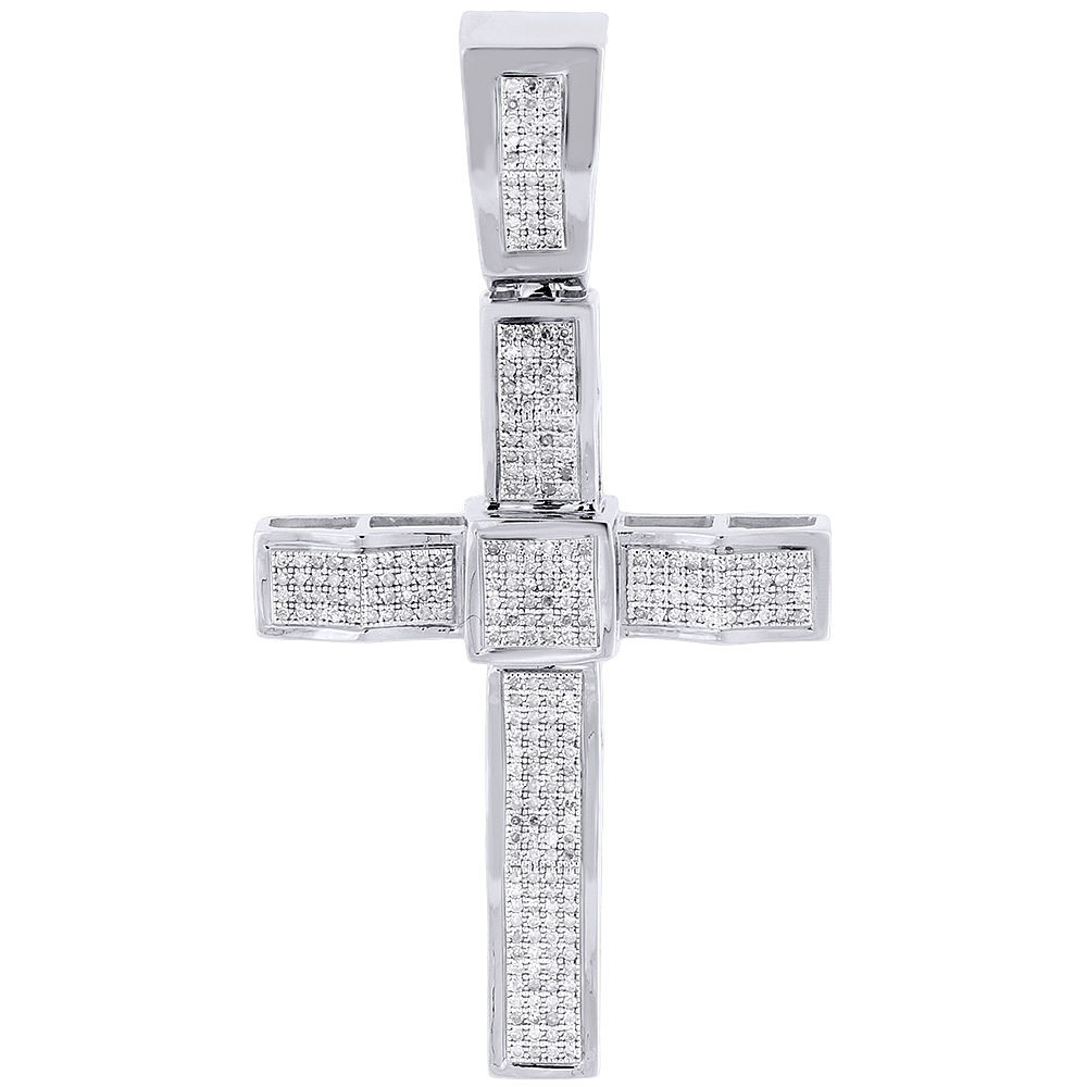 (10.9 grams of 10K white gold, 0.81 total carats of white diamonds; 2.50" long & 1.33" wide; SI2 - I1 Clarity & H - I color; Wavy diamond cross charm / pendant for men's)
