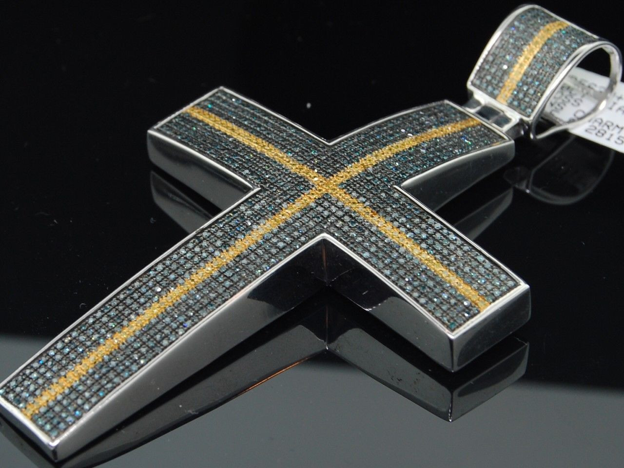 - Blue & Yellow Diamond Cross Pendant Mens .925 Sterling Silver Round Pave Charm