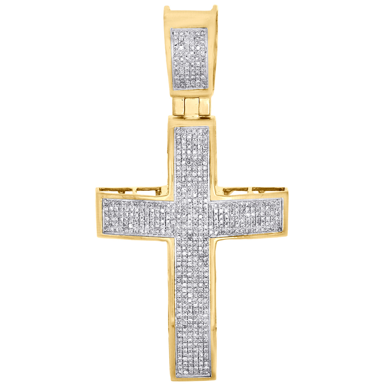 - 10K Yellow Gold Genuine Diamond Dome Cross Pendant 2.30" Mens Pave Charm 1/2 CT.