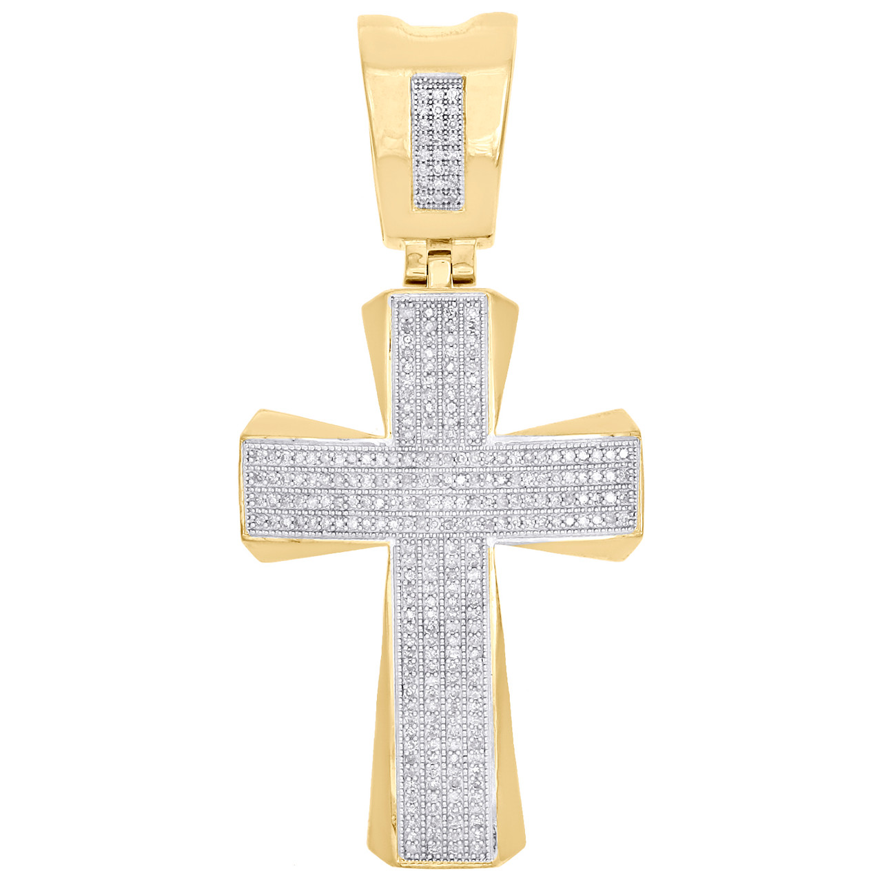 (10.4 gr. of 10K Yellow Gold | Total Carat Weight: 0.75 ct. t.w. of White Diamonds | Length: 2.40" (including bail) | Width: 1.15" | Clarity: I1 - I2 | Color: H - I | Men's Real Genuine Diamond Wide Domed Cross Pendant Statement Pave Charm)