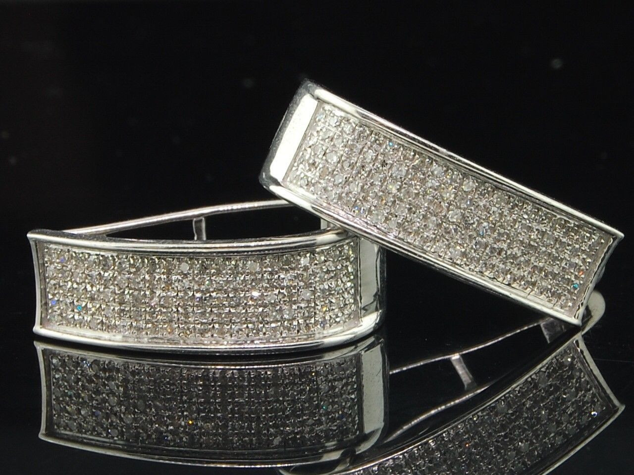 - Diamond Huggies Hoops Ladies .925 Sterling Silver Round Pave Earrings 0.58 Tcw
