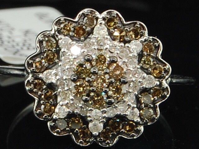 - Brown Diamond Flower Cocktail Ring 10K White Gold Designer Fashion Band 0.66 Ct.